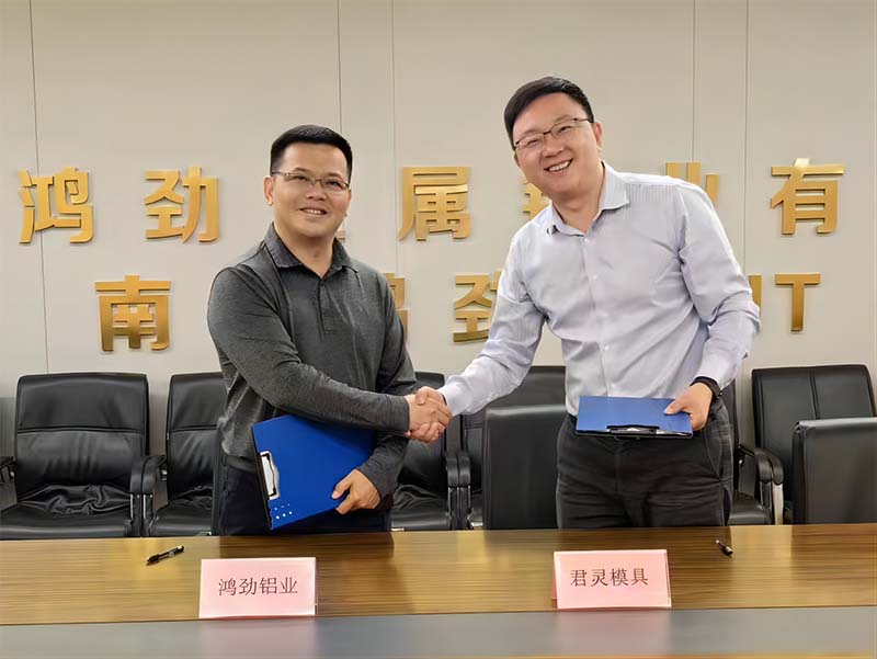 南通鸿劲金属铝业有限公司及鸿劲新材料研究(南通)有限公司隶属于华劲铝业集团,专业从事高性能新型铝合金材料研发和生产,公司潜心研发的高强耐磨、高强高韧、高导热、高气密性等多系列新型铝合金,可广泛应用于新能源汽车、储能、5G通信、光伏等领域。宁波君灵模具技术有限公司集研发、设计、生产于一体的高新技术企业,通过多年持续发展和产业升级,现已成为行业领先的汽车轻量化功能件、结构件,新能源储能组件等大型模具及产品生产商。具备产品协同开发、模具设计制造、压铸件试制验证、多品种小批量一体化交付能力。相信南通鸿劲与宁波君灵的本次强强联合,必定会取得辉煌成果。